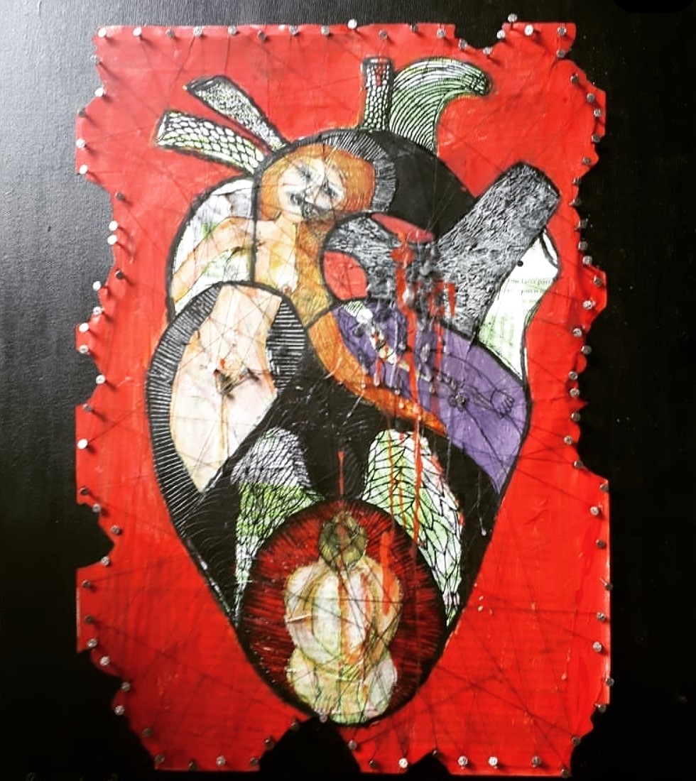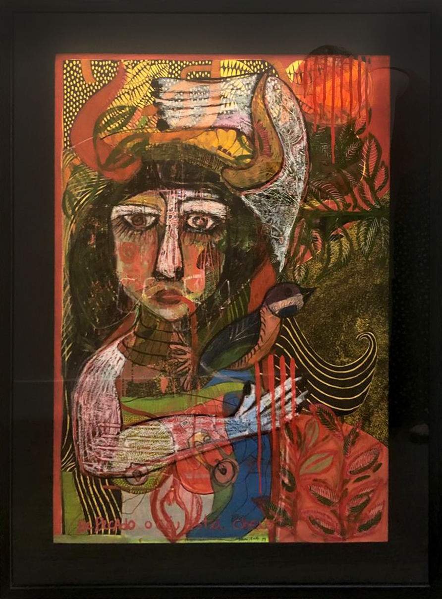 Dani Acioli é artista, feminista, de linguagem figurativa com forte inspiração na estética do Cordel e Xilogravura, cultura forte do interior do nordeste Brasileiro. Um traçado pensado no negativo da imagem, na retirada da cor. Primeiro, o preto no branco, com o nanquim sobre o papel; suporte principal do trabalho. Depois veio a experimentação com outros suportes em técnicas mista (tinta, pastel, cera, canetas); cores fortes. Amarelos. Outros materiais, como tecido, madeira e arames. Como tema, desde o início, a mulher. A origem. O feminismo. A construção da afirmação num mundo predominantemente machista. O erotismo, pudor, sacrifício, origem, patriarcado. Desejo de performar. Romper com a tela.